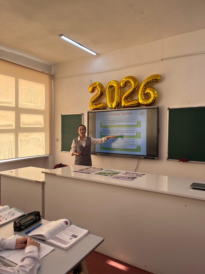 Барсакелмес мемлекеттік табиғи қорығы - Қазақстан Республикасындағы бірегей табиғи аймақтардың бірі. Аталған қорықтың тарихы, табиғи ерекшеліктері мен экологиялық маңызы туралы оқушыларға кең көлемде мәлімет берілді.